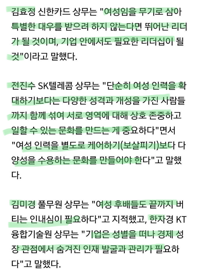 모인 사람들은 진짜 열심히해서 요직을 차지한 ㄹㅇ 강단있는여성들