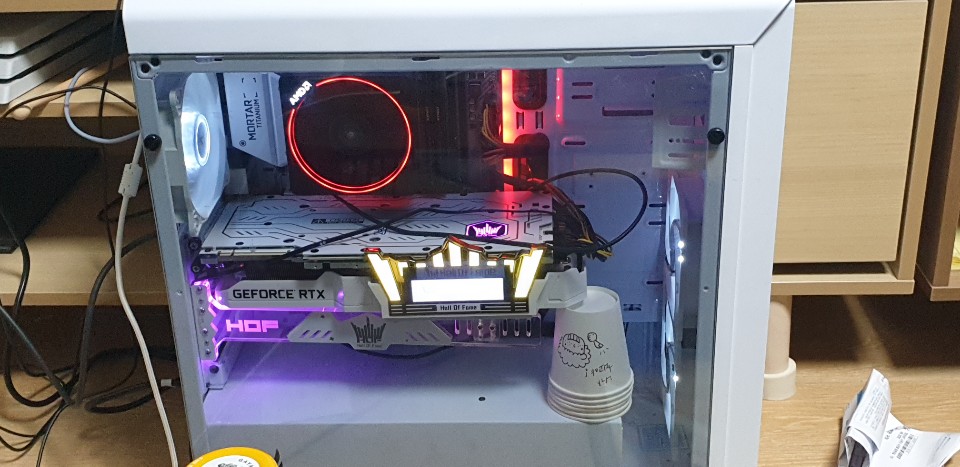 저 하얀거 그래픽카드야 뭐야? 그 뒤에 x로 되어 있는 선 되게 거슬린다