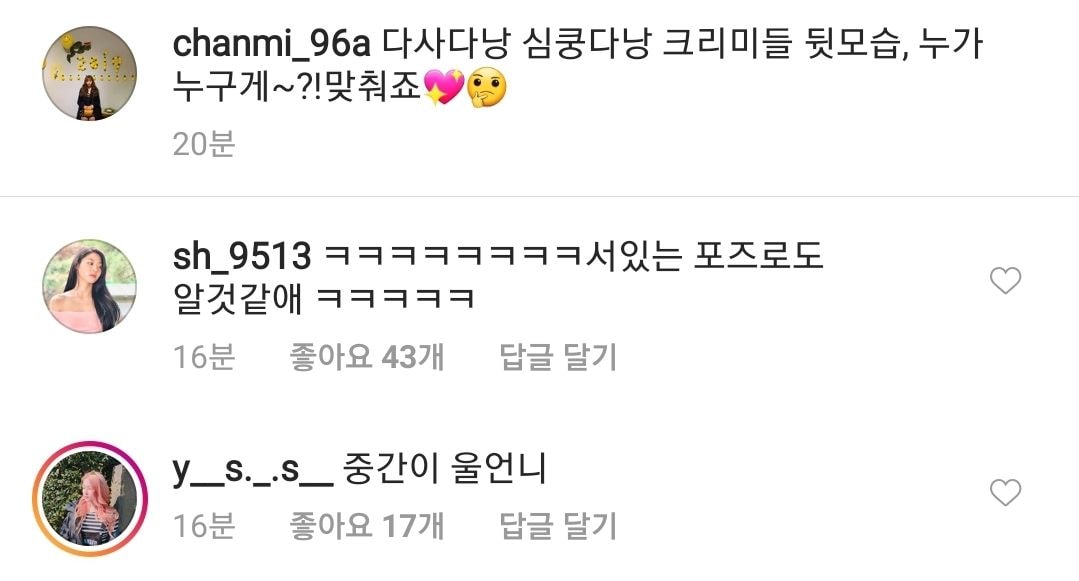 - 근데 키로 봐서 혜정, 유나, 찬미 순일 거 같긴 함.