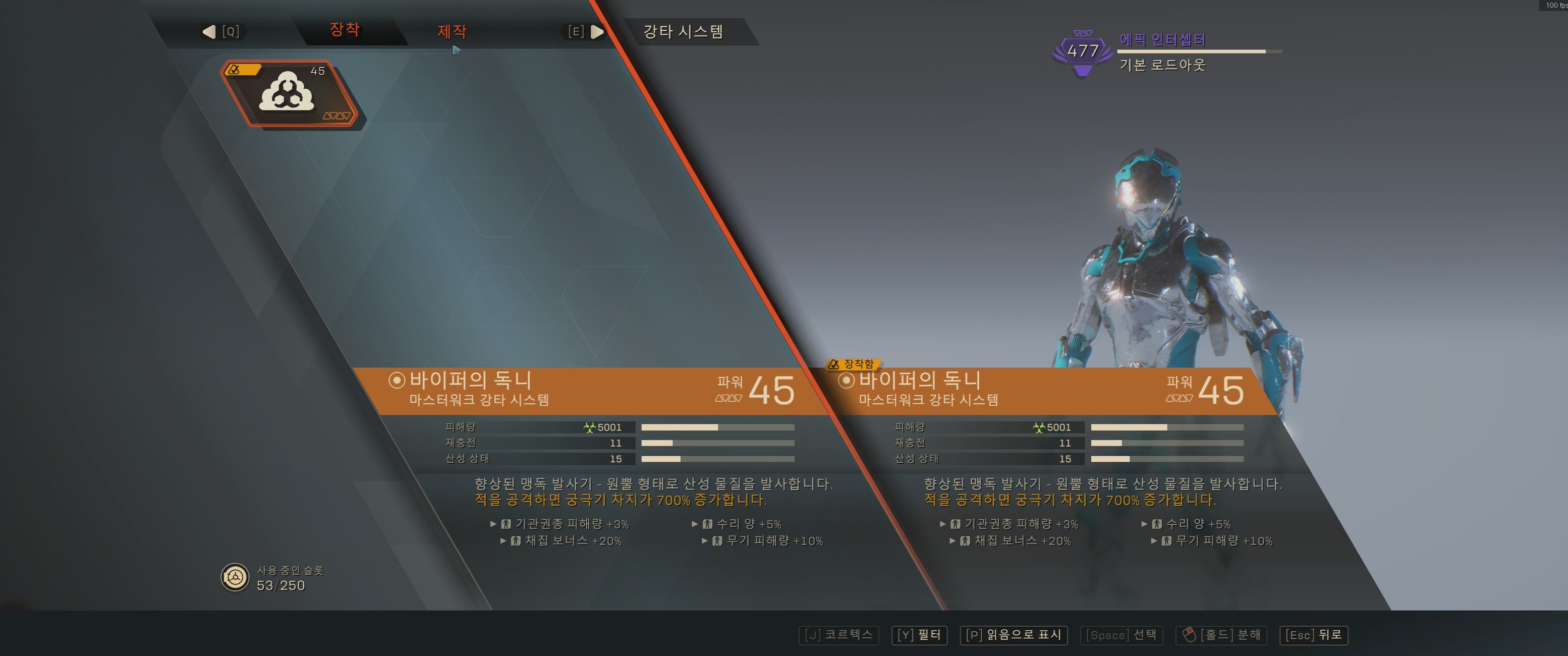 보조장비 마스터워크인 궁빨리 채워주는 바이퍼의 독니 먹었다