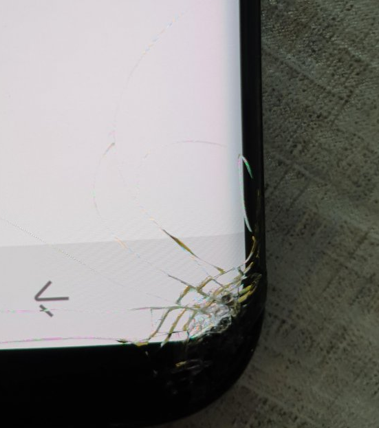 이건 강화유리만 깨진거 같지만 오른쪽 아래 검은색 점(흑점)이 있어서 매입거부 0원