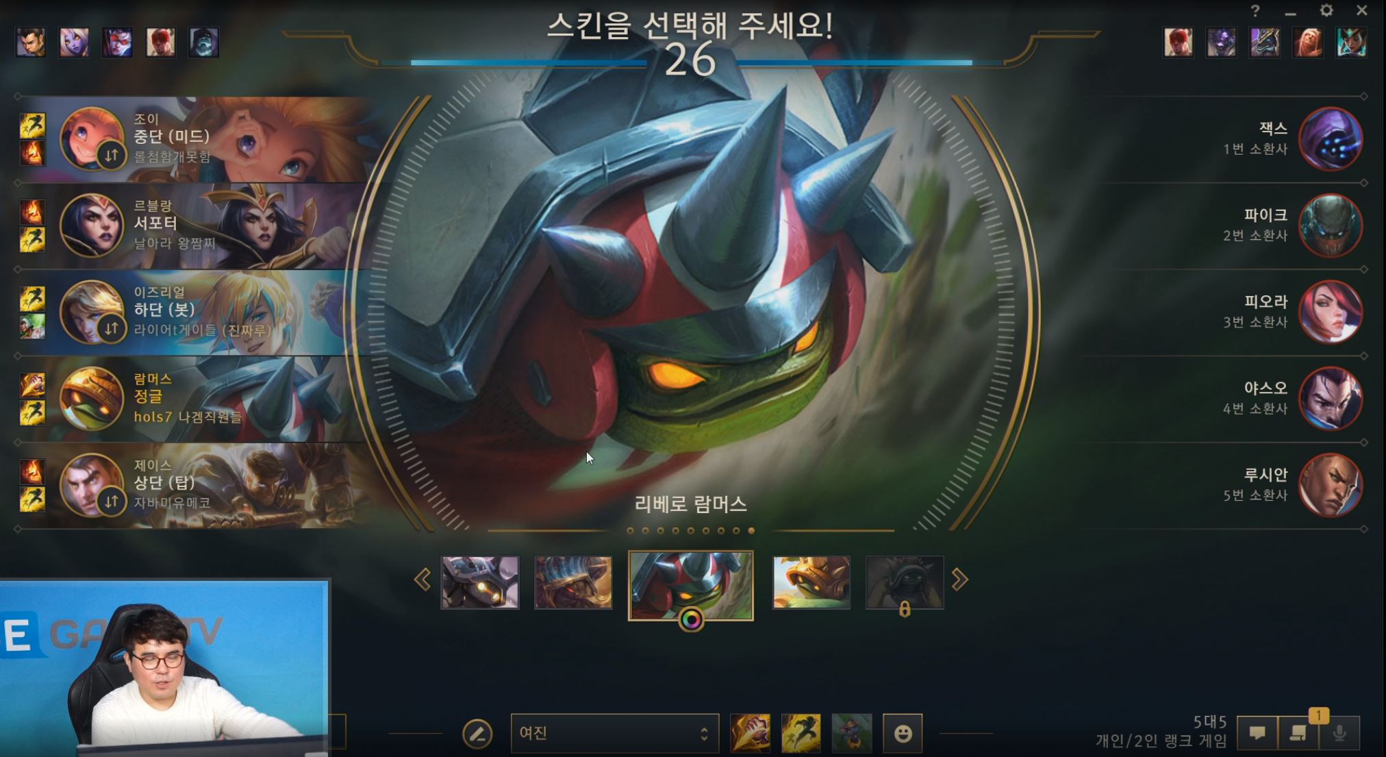 홀스 아재 정글러 람머스인데 상대 조합이 ㅋㅋㅋㅋㅋㅋ