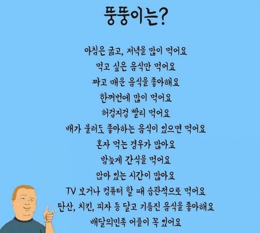 그래 난 뚱뚱이다 그러니 지금 고기를 먹을거다
