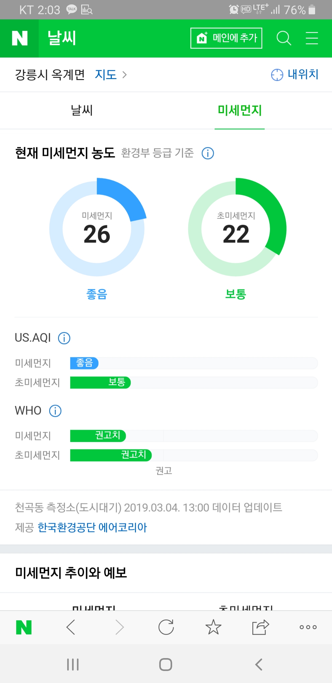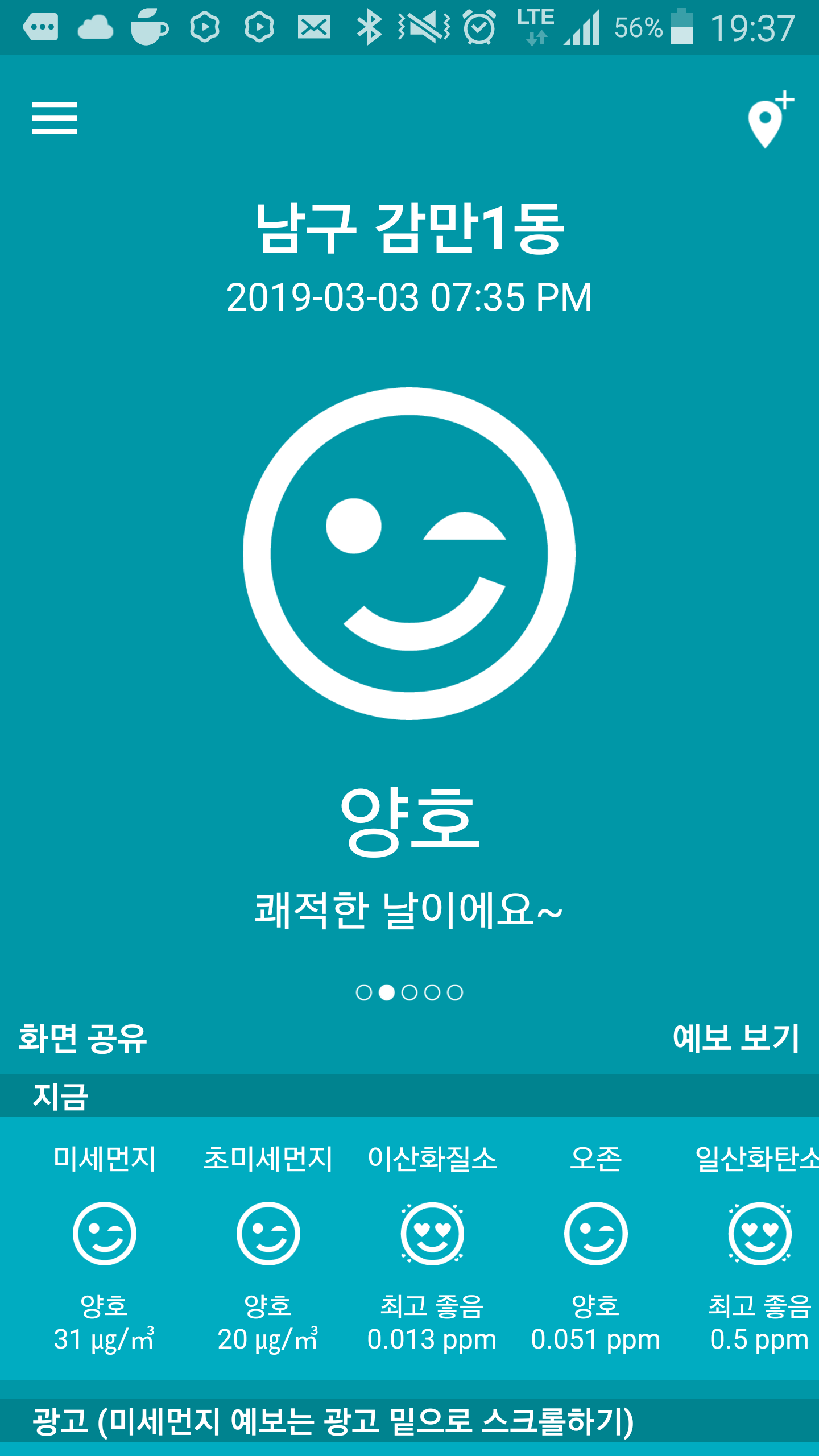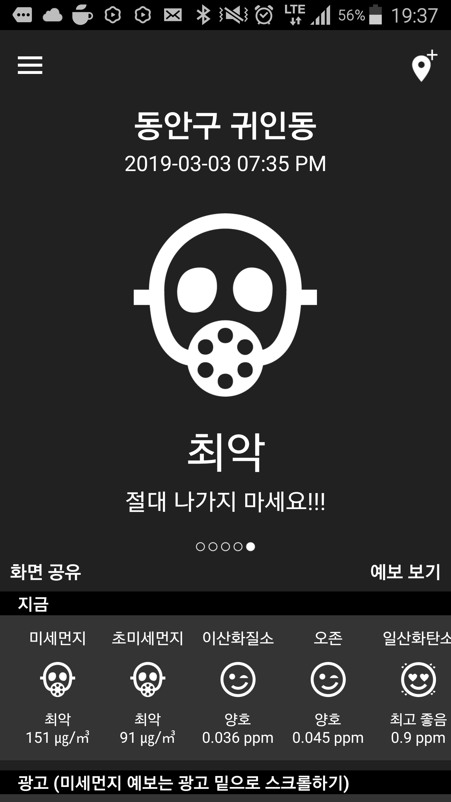 지금 시간은 서울 대전은 최악인대 부산은 좋음이다 위보다 더 좋음.