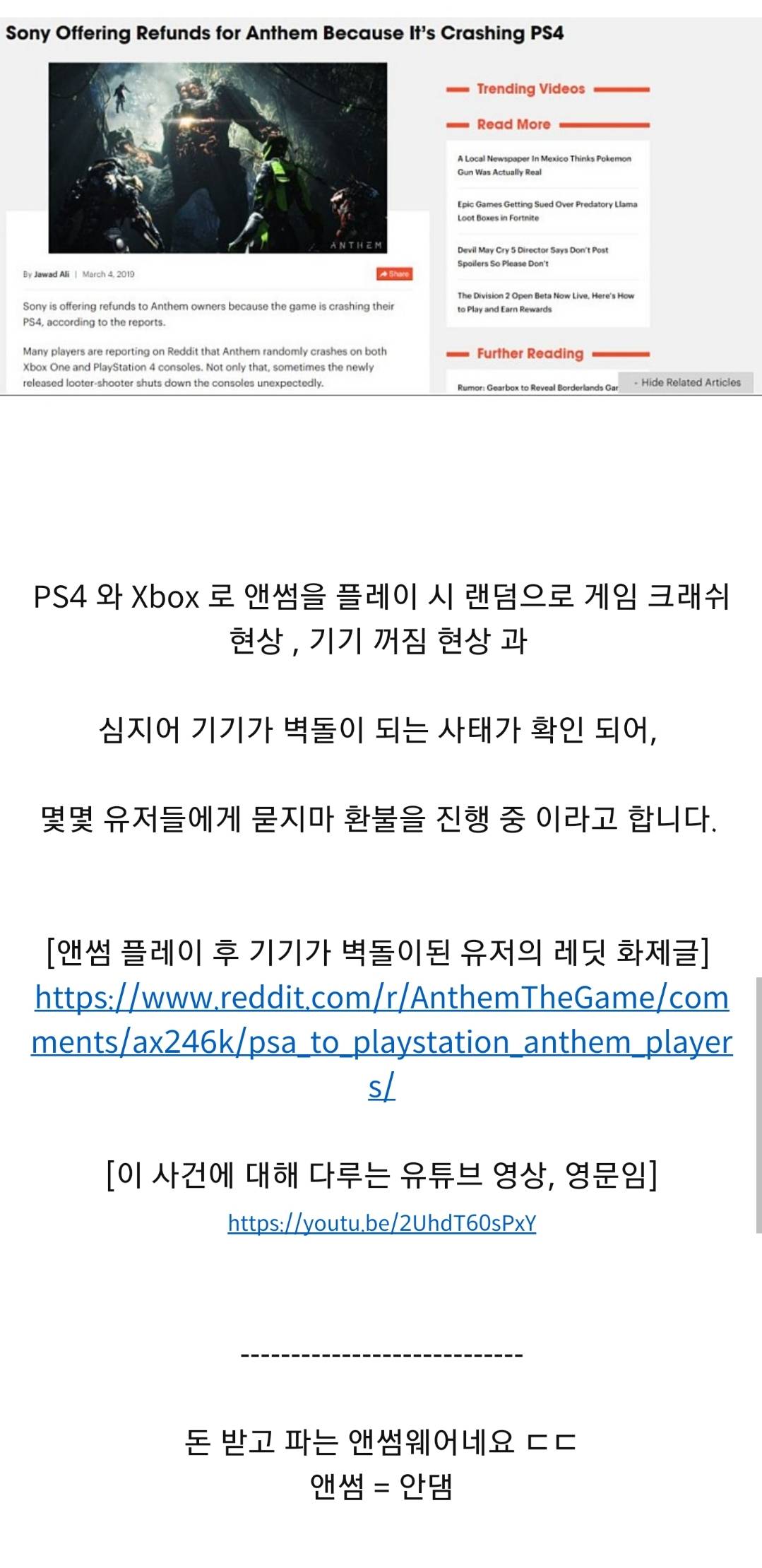 확인해봤는데 벽돌이 되는것 까지는 아니라고 함 레딧에 이미 푸는법이 올라왔다고는 하는데 어찌되었거나 미친놈들임