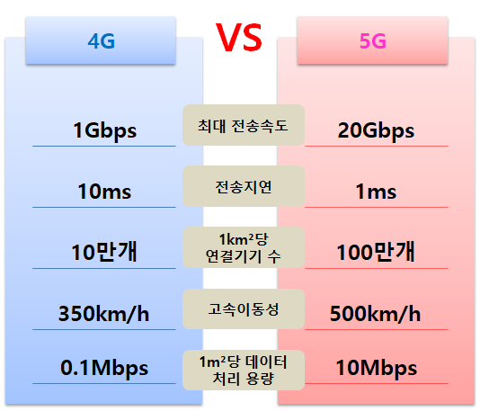 단순비교데이터짤인데 핵심은 더 빠른 속도, 짧은 지연시간,더 많은 기기접속임 이걸 활용해서 어떤 어플이 나오느냐지 내가 갤10에서 관심있는건 5g라 아직 안갈아탐 두고보고 갈아탈려고