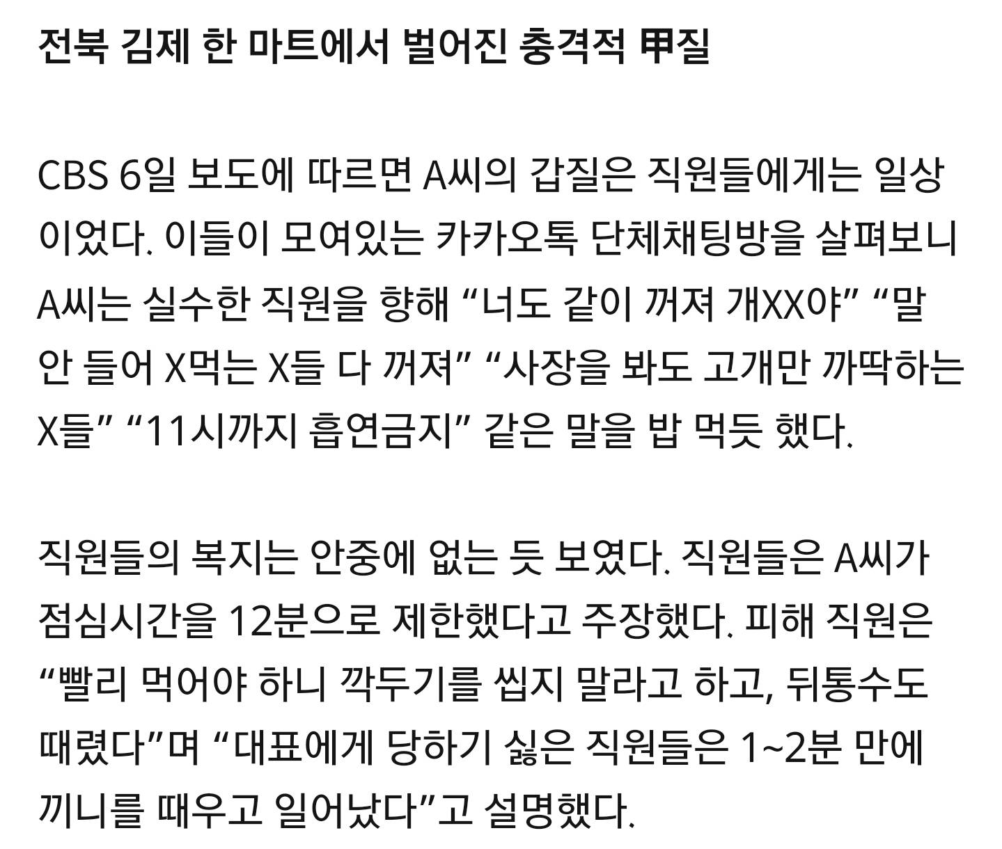 깍두기 씹지말라면서 뒤통수 치는건