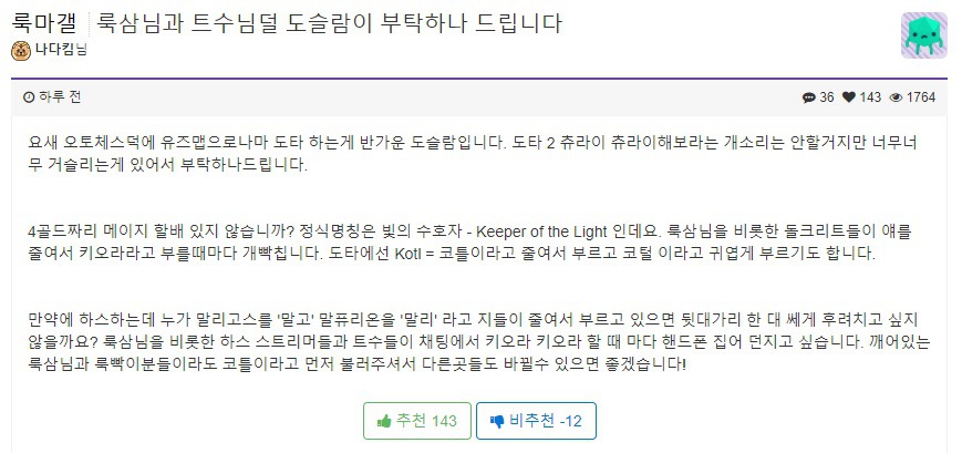 난 도타 하지도 않앗는데 키오라를 말할때마다 뭔가 어색해서 그냥 할배라고 함 ㅋㅋ