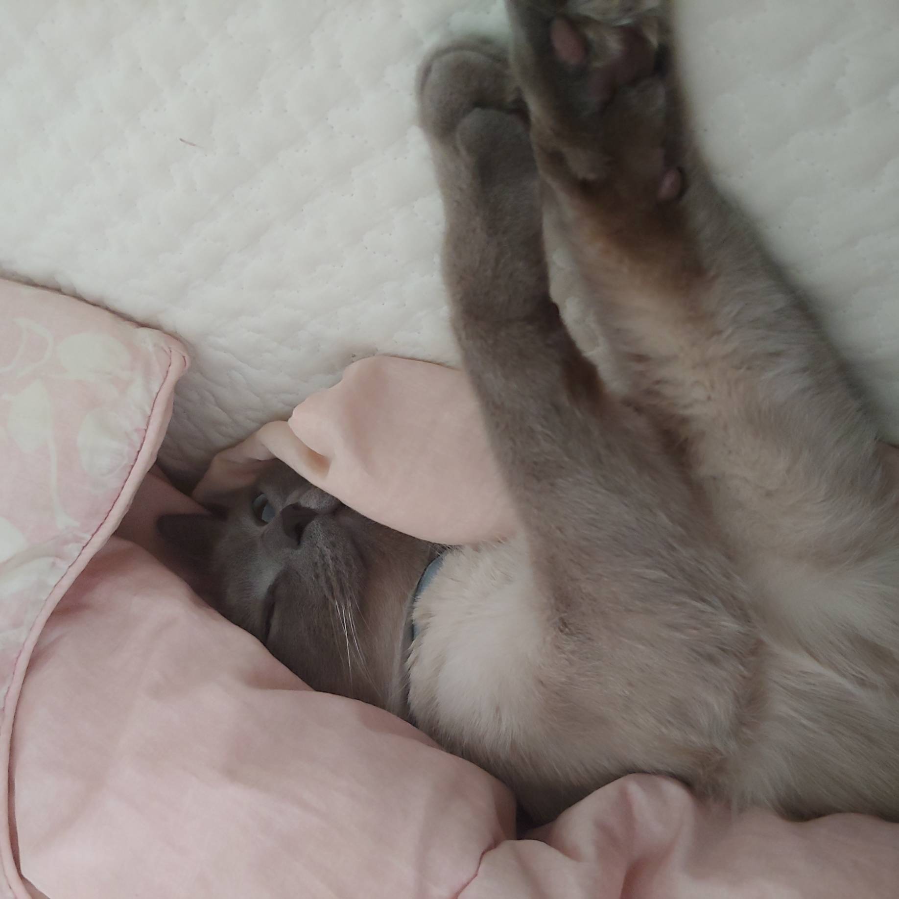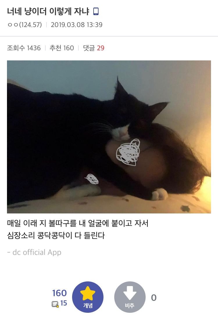 늦잠자면 델피가 따라 들어옴
