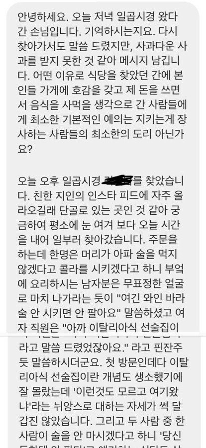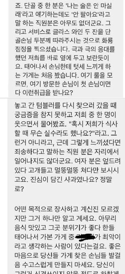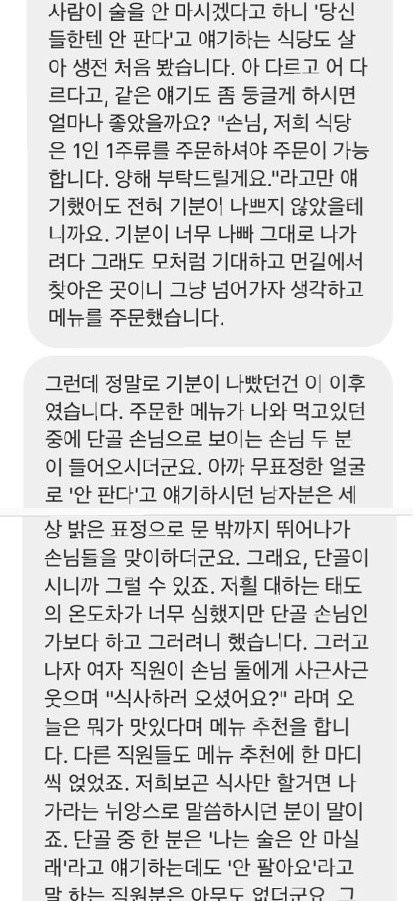 1. 제보자가 술 안시키니까 직원들이 대놓고 핀잔주고 안 판다고 함
