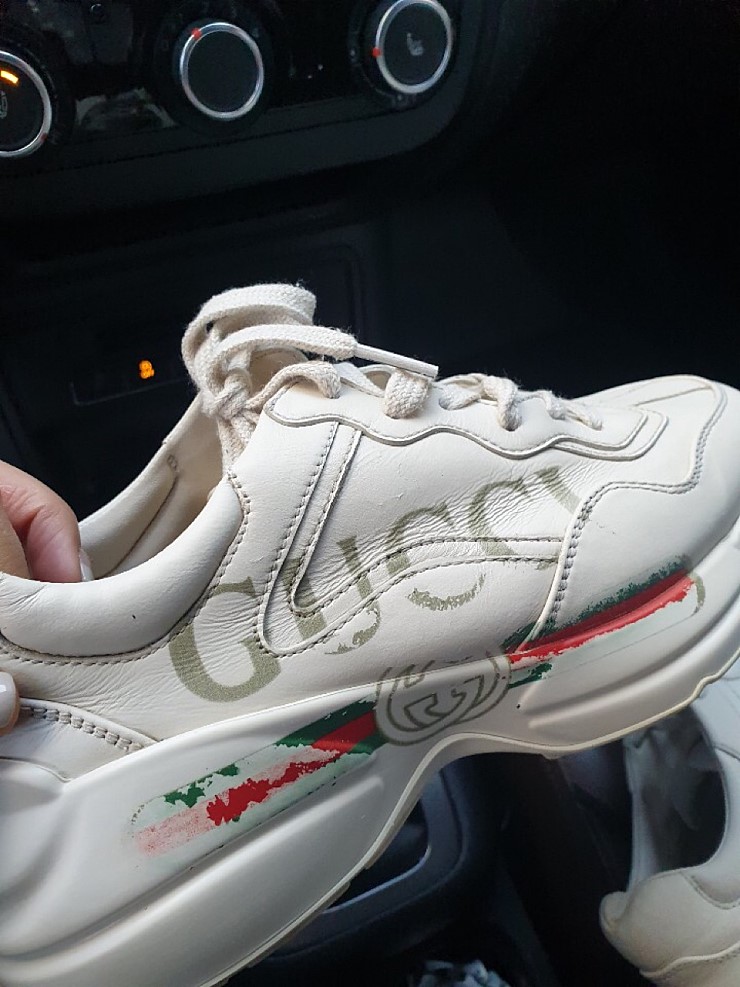 구찌 라이톤(가격 100만원)을 신발 세탁소에 맡겼더니 저런식으로 로고가 다 지워져서 옴