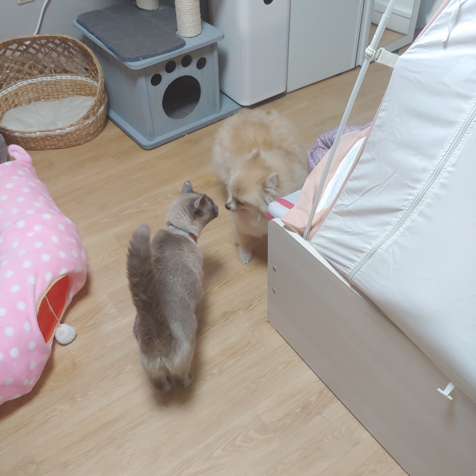 6고양이들은 집에 다른개 놀러왓을때 죄다 도망가서 캣타워위에서 쳐다보기만 했었데