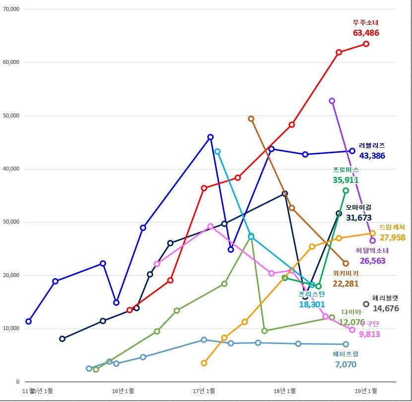 당연한 얘기지만. . . 앨범 사양(싱글이냐 정규냐 아니면 리팩이냐 등)이나 활동 기간 내 팬싸 횟수 등의