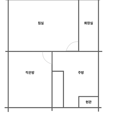 방2개에 화장실 있고, 거실겸 부엌이 있고