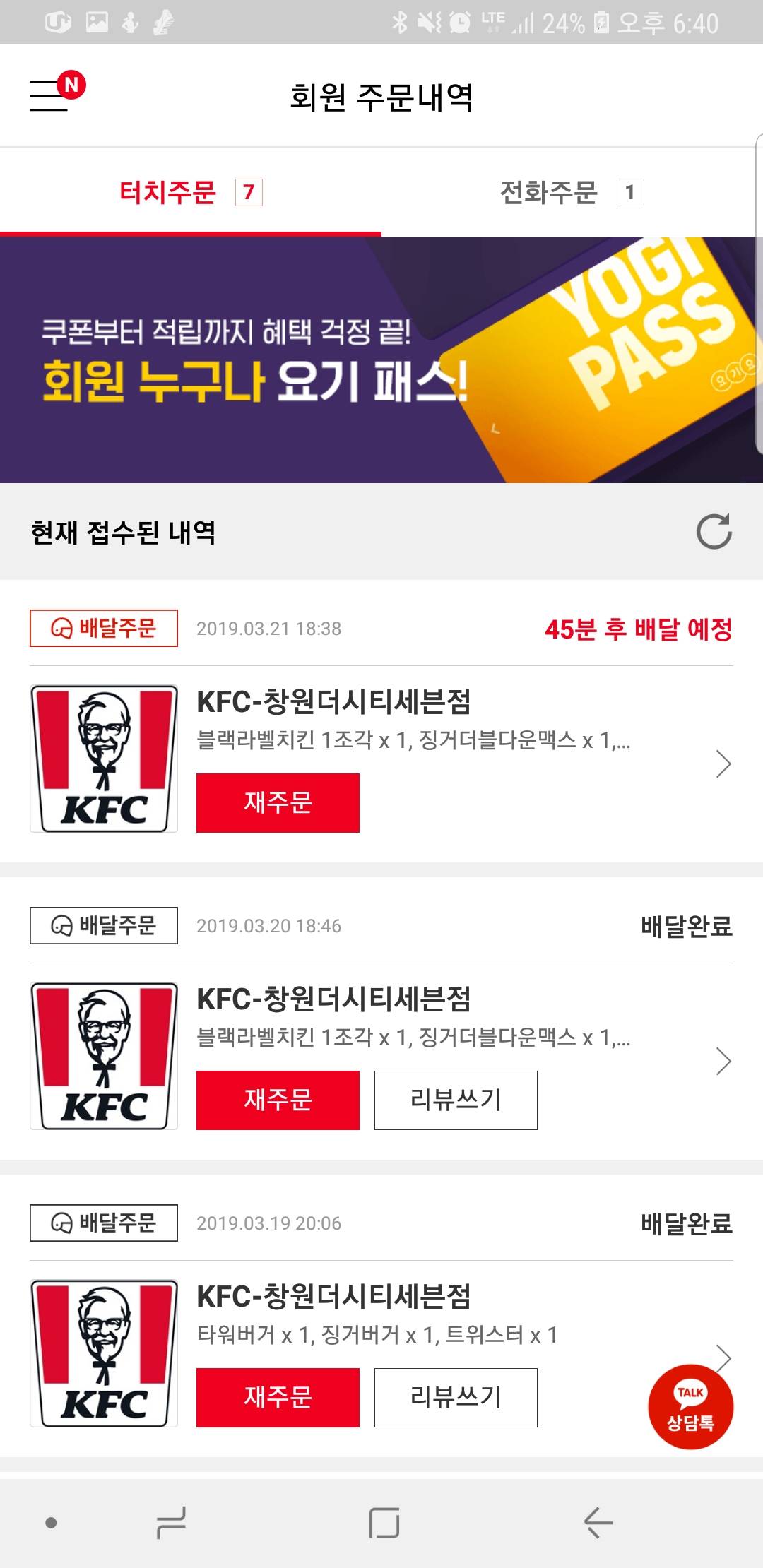 징거다운맥스+블랙라벨치킨+징거버거해서 7300원 갓갓