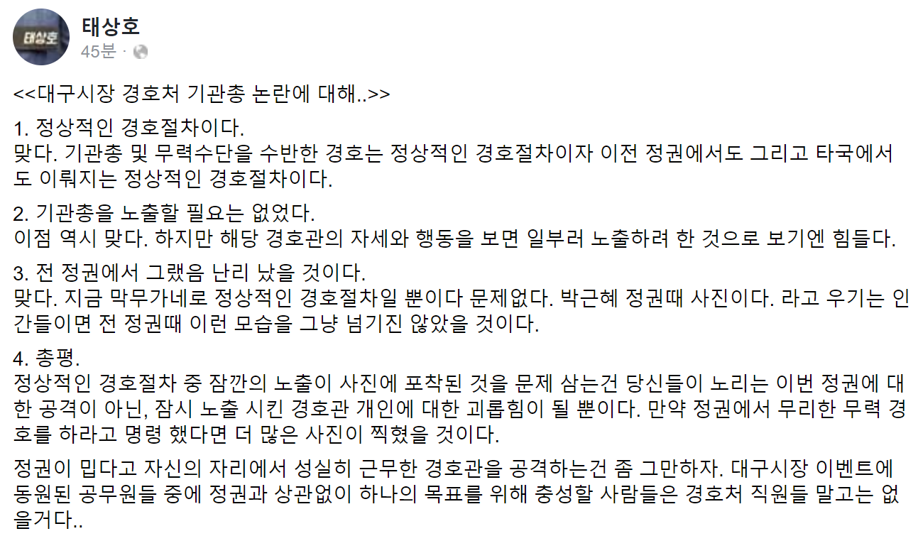 총기소지 허용된 나라에서는 걍 대놓고 있어도 상관없을거 같긴한디 우리나라 정서상으로는 권총 차고 있는정도면 괜찮아도 기관총 저렇게 들고있는건 좀 과한거 같음..