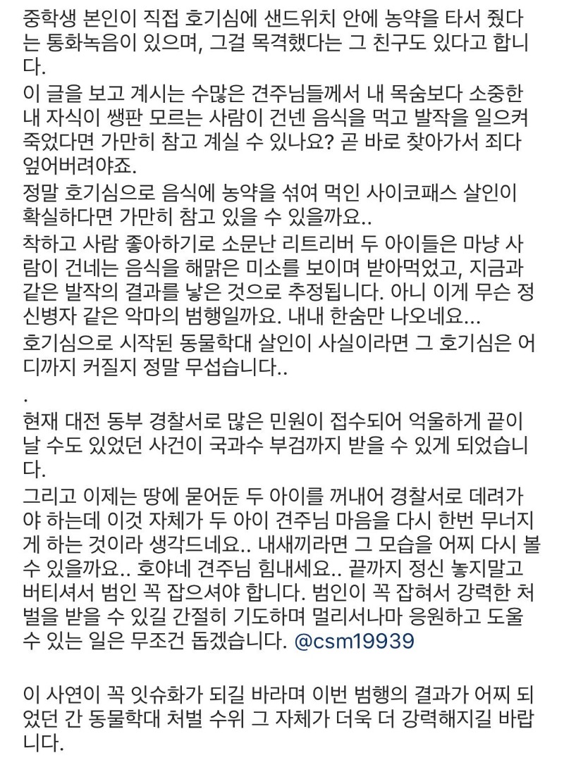 내 개였으면 중학생새끼 입 개구기로 고정시켜놓고 농약 들이붓는다