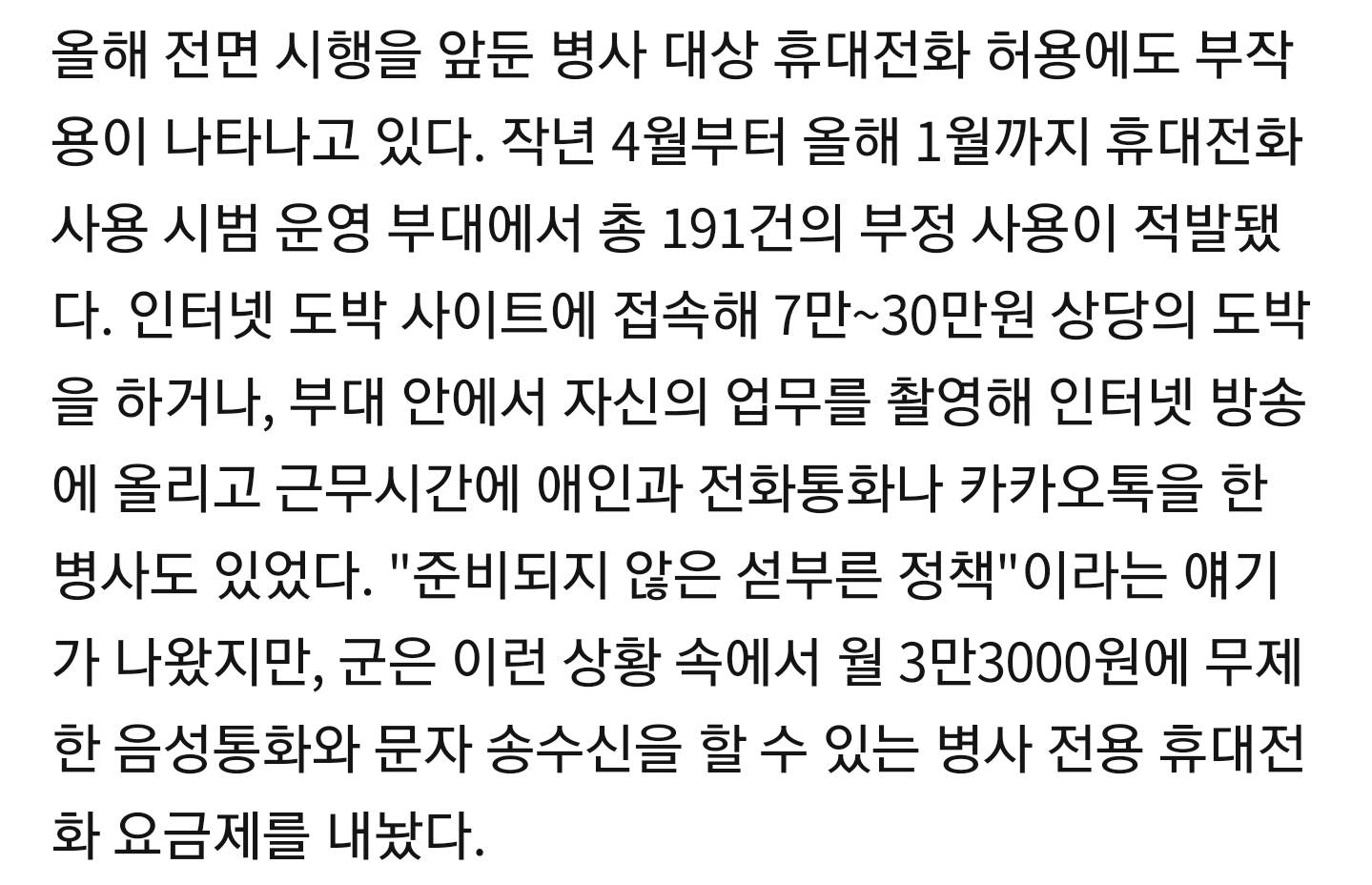 도박할거니까 폰주면 안된다는 말이 아니라 존나 심각한 문제로 받아들여서 분위기를 제대로 만들어야한다는 말 도박 소리하는 놈들 죄다 영창보내고 폰 압수시켜야지 보안도 큰 문제인데 이것도 간첩아닌이상 모르거나 아무생각없어서 유출하는 애들이 대부분이니 교육 존나시키고 철저히 벌해서 분위기잡아야지