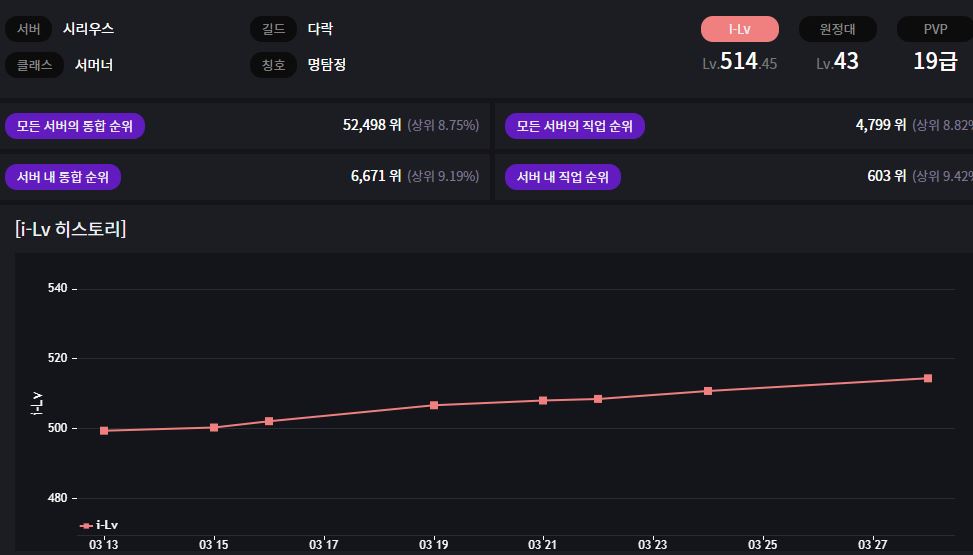 중간에 몇 주 안하기도 하고 타탈진입하고서 악세운 개똥이었어서 515 뚫는게 늦어져따