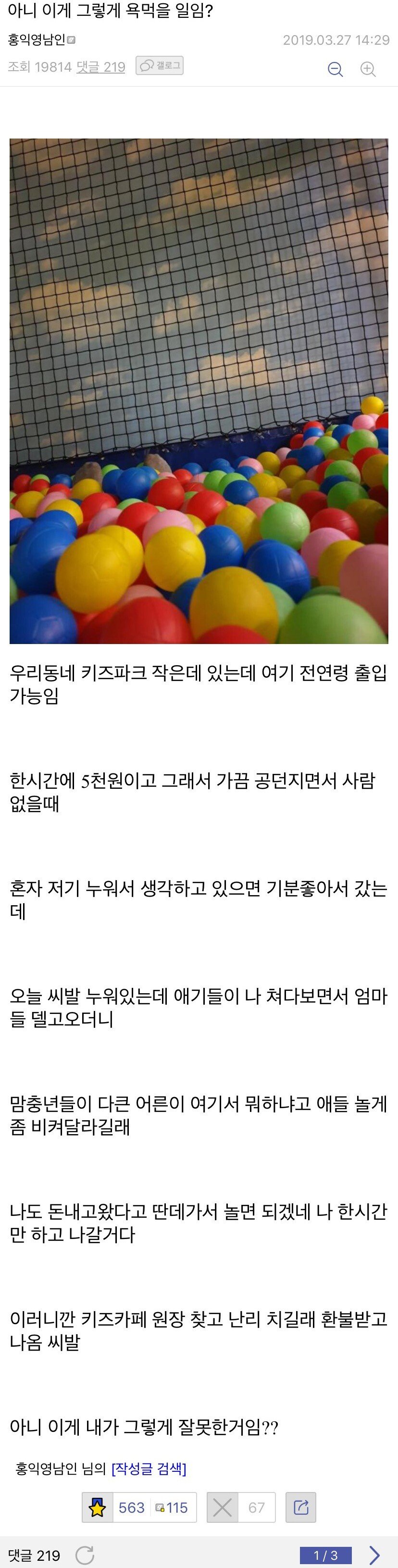 갈데가 그리없나;;; 그거랑 별개로 볼풀장 애새끼들 입이 넣는경우가 하도많아서 난 혼자라면 드러워서 안갈건데. 애땜에 가지