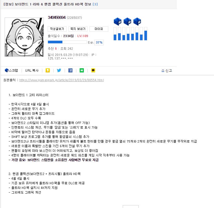 근근웹에 가보니 정보 있어서 퍼옴 4월 4일에 리마스터 다 풀리는듯