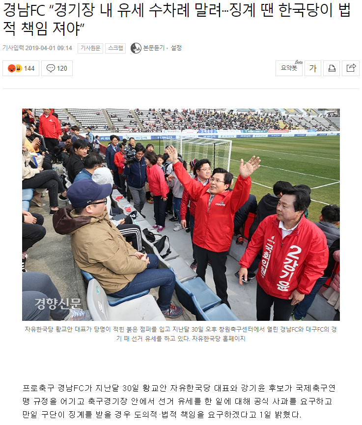 축구와 정치가 연관되면 안된다는 국제 축구 연맹의 규칙에 따라 승점 10점 깎일 수도 있다함