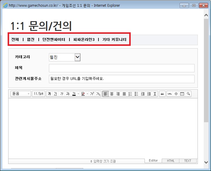 던파조선을 들어가신 다음에 좌측 하단에 건의사항 들어가야 나온다네