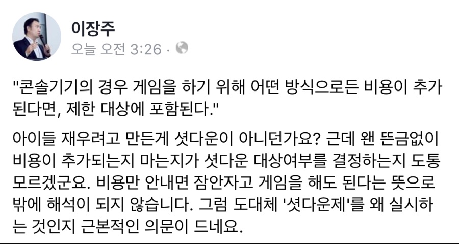 2. 중독성 높은 게임의 기준 역시 놀랍습니다. '영리목적으로 정보통신망을 통해 실시간으로 제공되는 게임물'이 바로 중독성 유발 우려가 높다는 판단 기준입니다. 추가 과금없이 콘솔게임을 밤새워 하는 것은 '건강한 게임이용습관'으로 판단하는 듯합니다. 앞으로 중독성 높은 패스트푸드 셧다운으로 청소년들의 건강한 식습관까지 지원하지 않을까 내심 기대해봅니다. 건강한 습관관리를 여가부가 하면 '보건복지부'는 도대체 하는 일이 뭔가요?