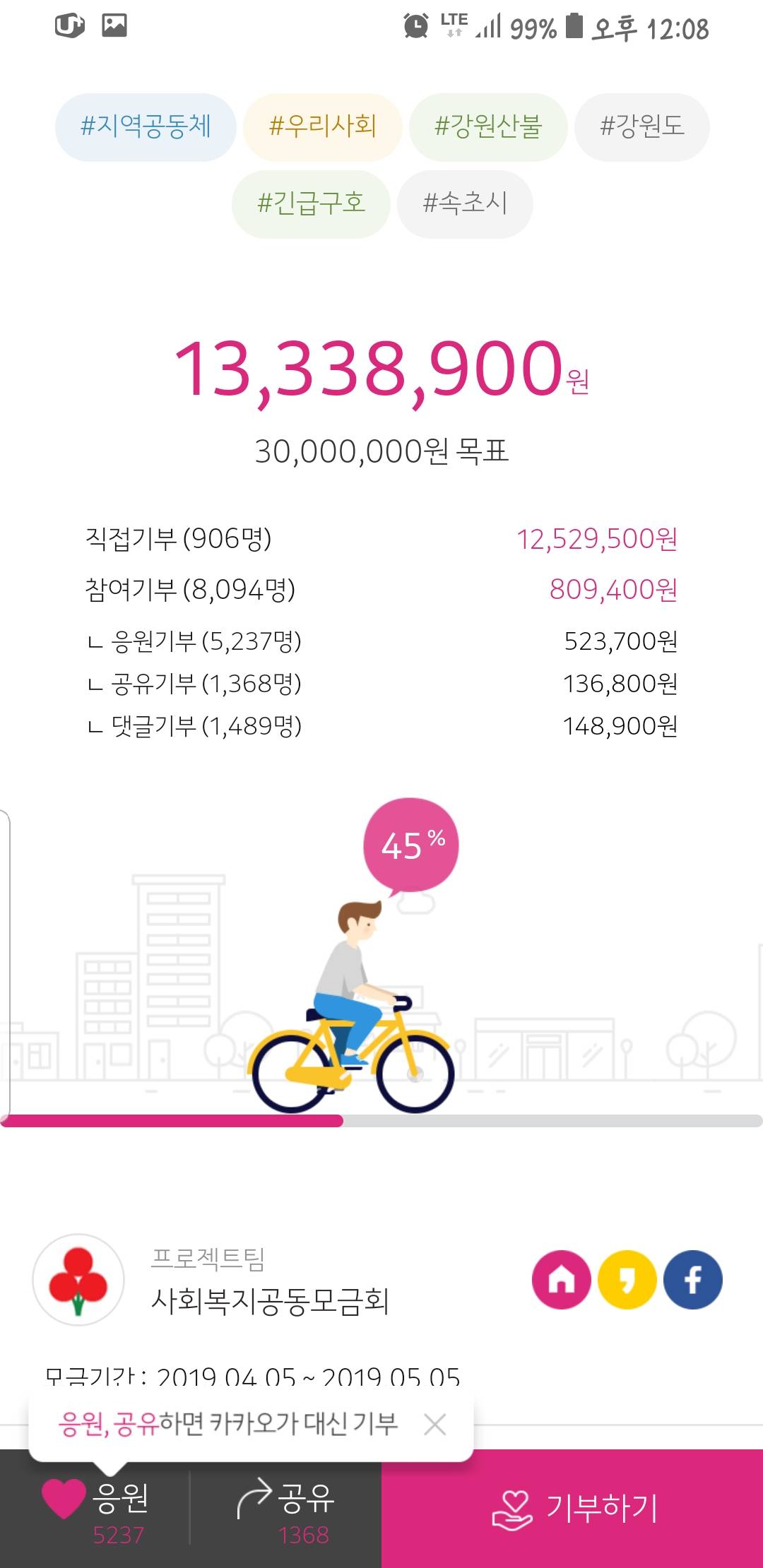 일단 나도 카카오로 직접기부하긴 했는데