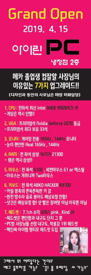 이쁜 알바가 항상 상주하는, 깨끗하고 사양 좋은 피시방이면 되겠다ㅏㅏ