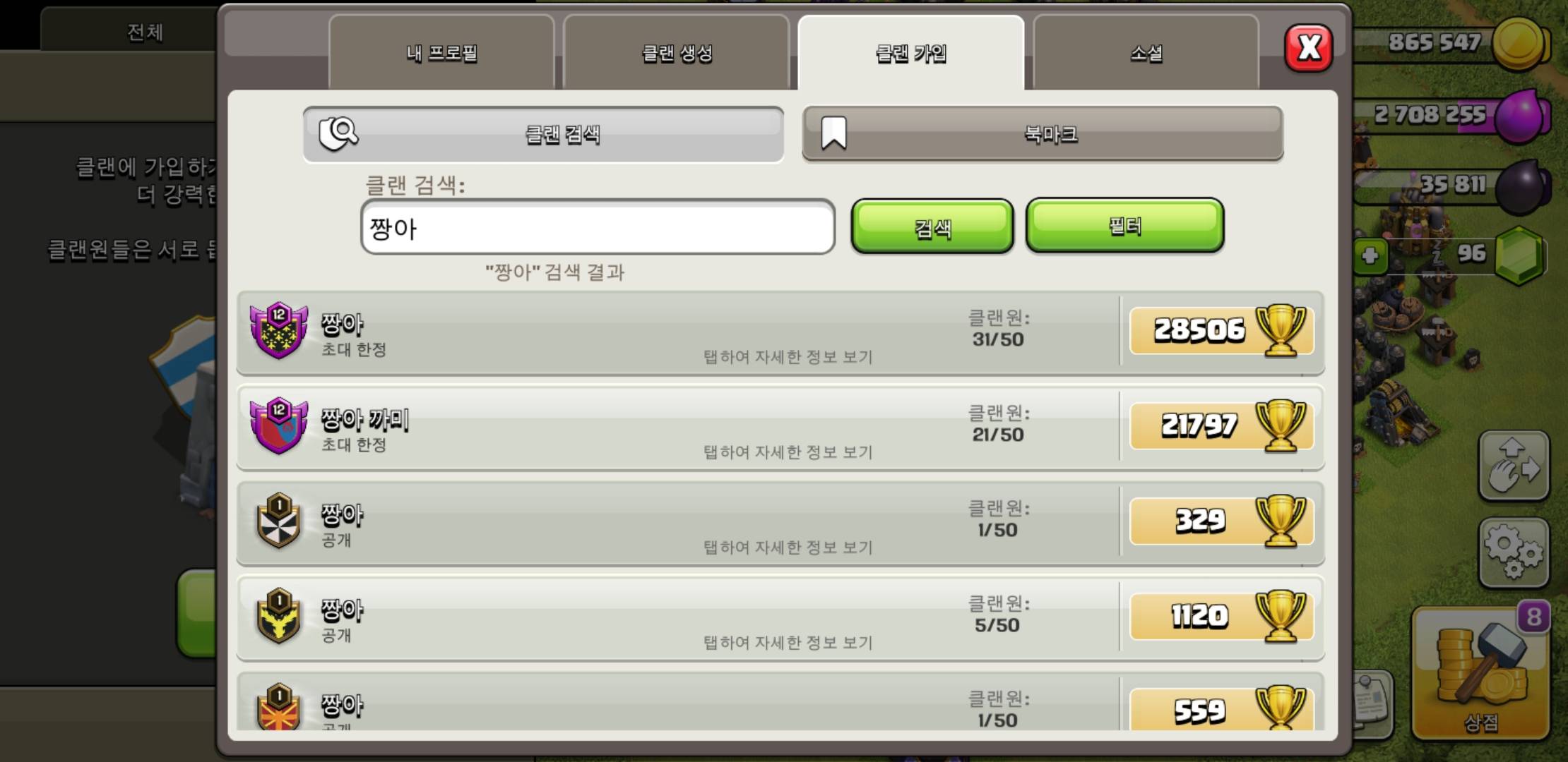 짱아 검색해서 가입하면 됨 트로피 제한 없음
