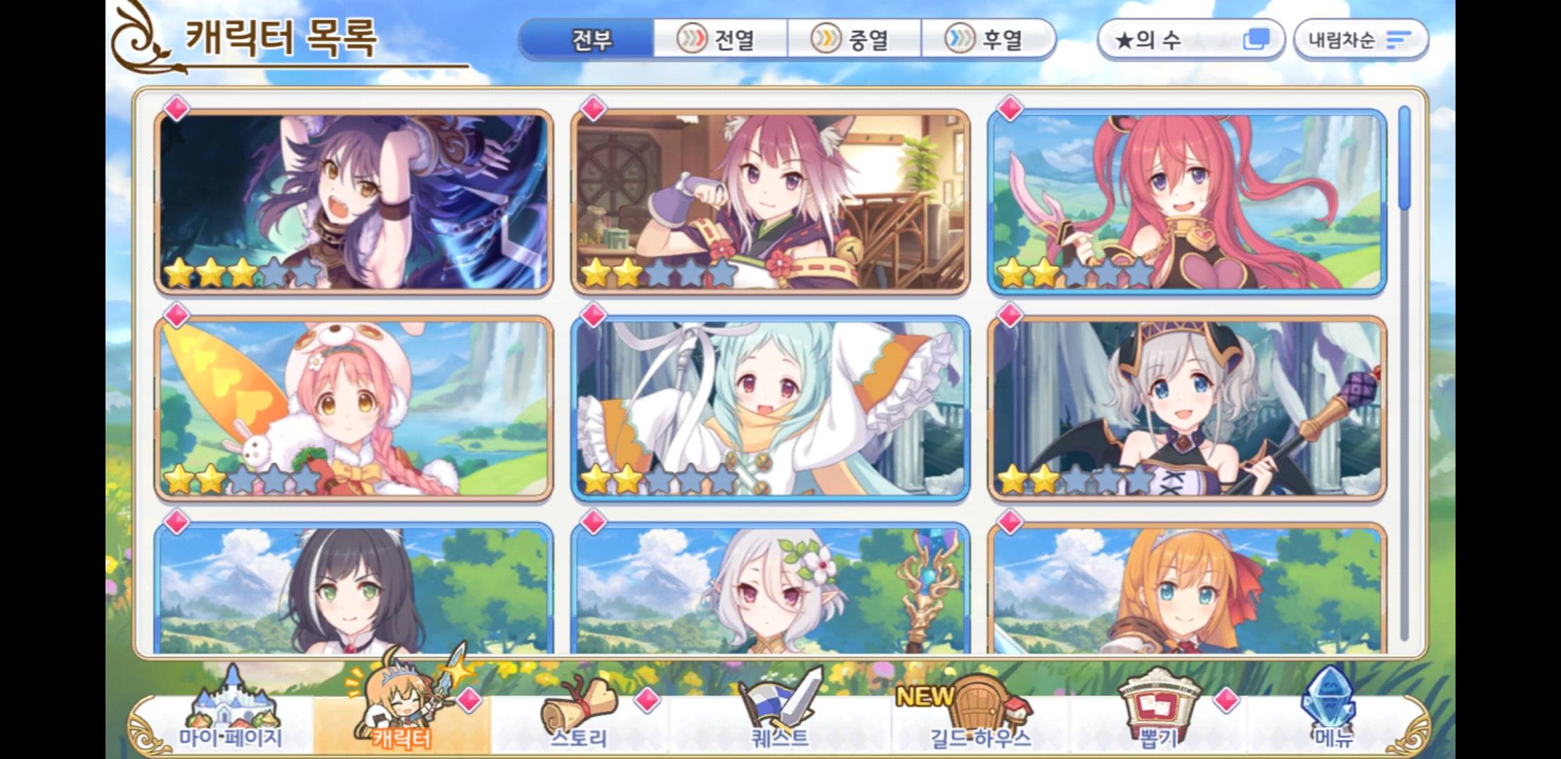 나는 3성 2개뽑아서 그냥하는데 내일 가챠10개정도 돌려서 쥰인가 죤인가 안나오면접는다 별미련없는 겜인데 줜나 약해서 빡친다 이제 30렙언저린데 개야케 푸딩이랑 카렌인가뭐시기랑 시즈루인가 뭔가있음