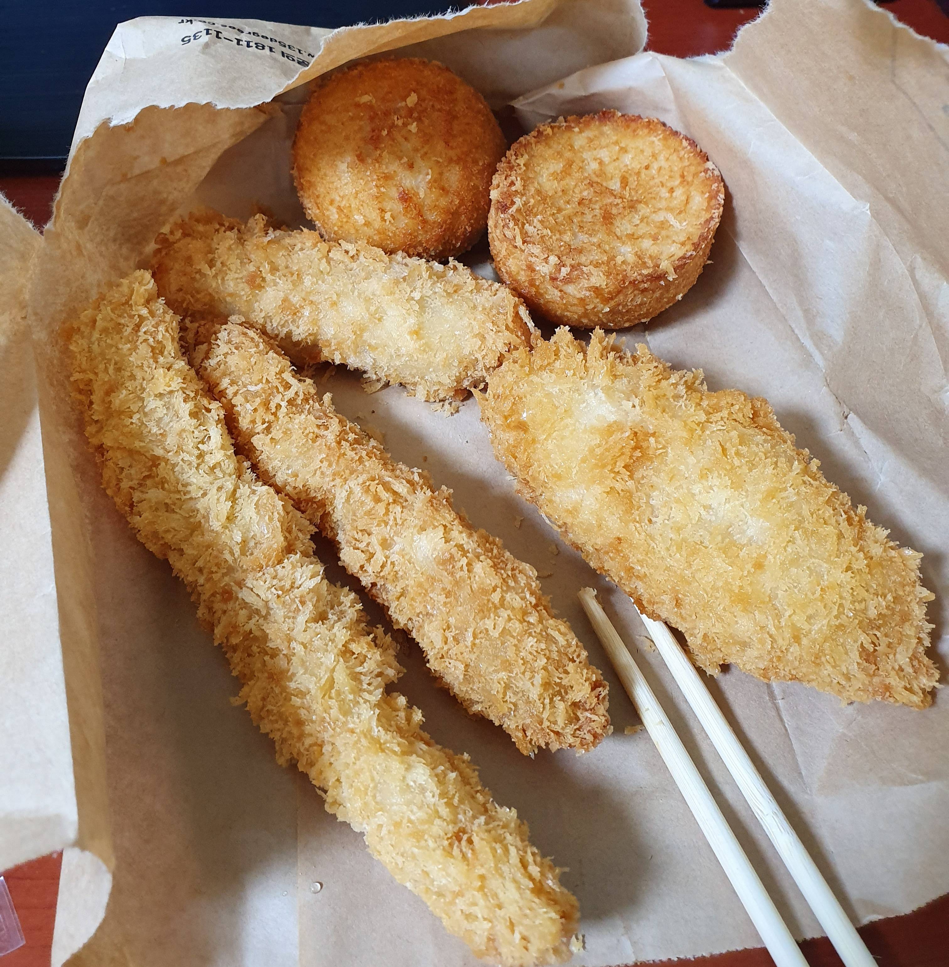 짜장한그릇 조지고먹은거 감안하면 맛은 ㄱㅊ은듯 고로케가 동그란건데 어묵으로 둘러싸고 안엔 만두소같이 들어있음