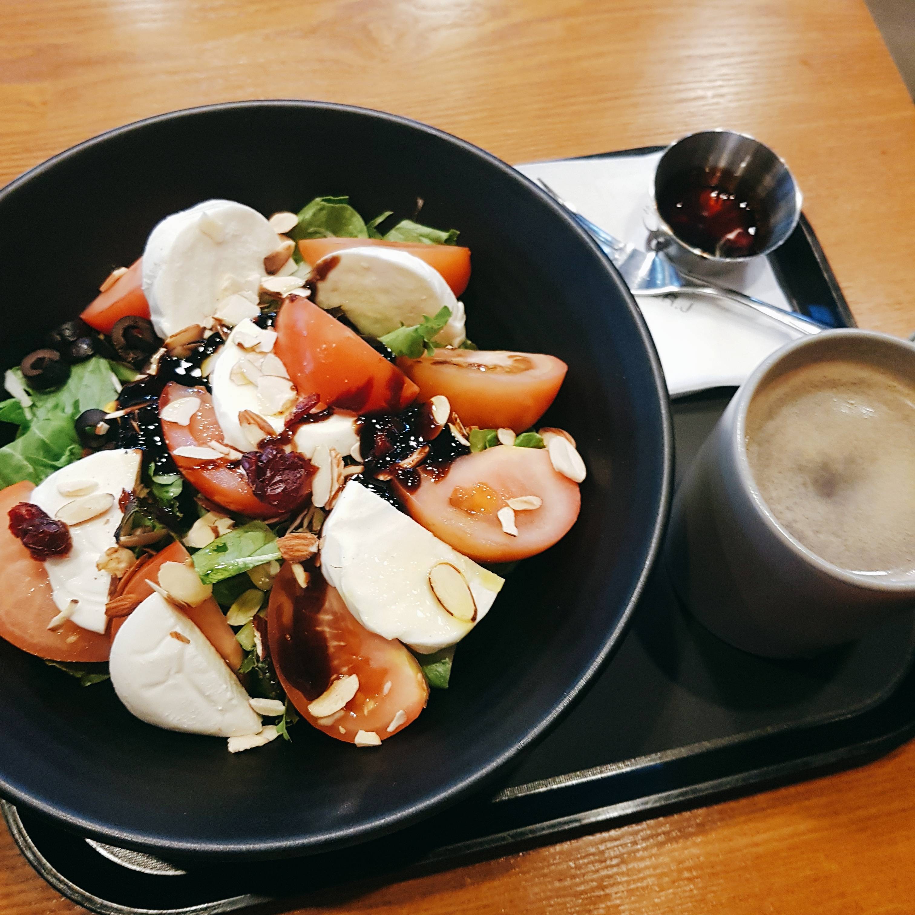 아침의 결심을 지키기 위해 샐러드 머것는데