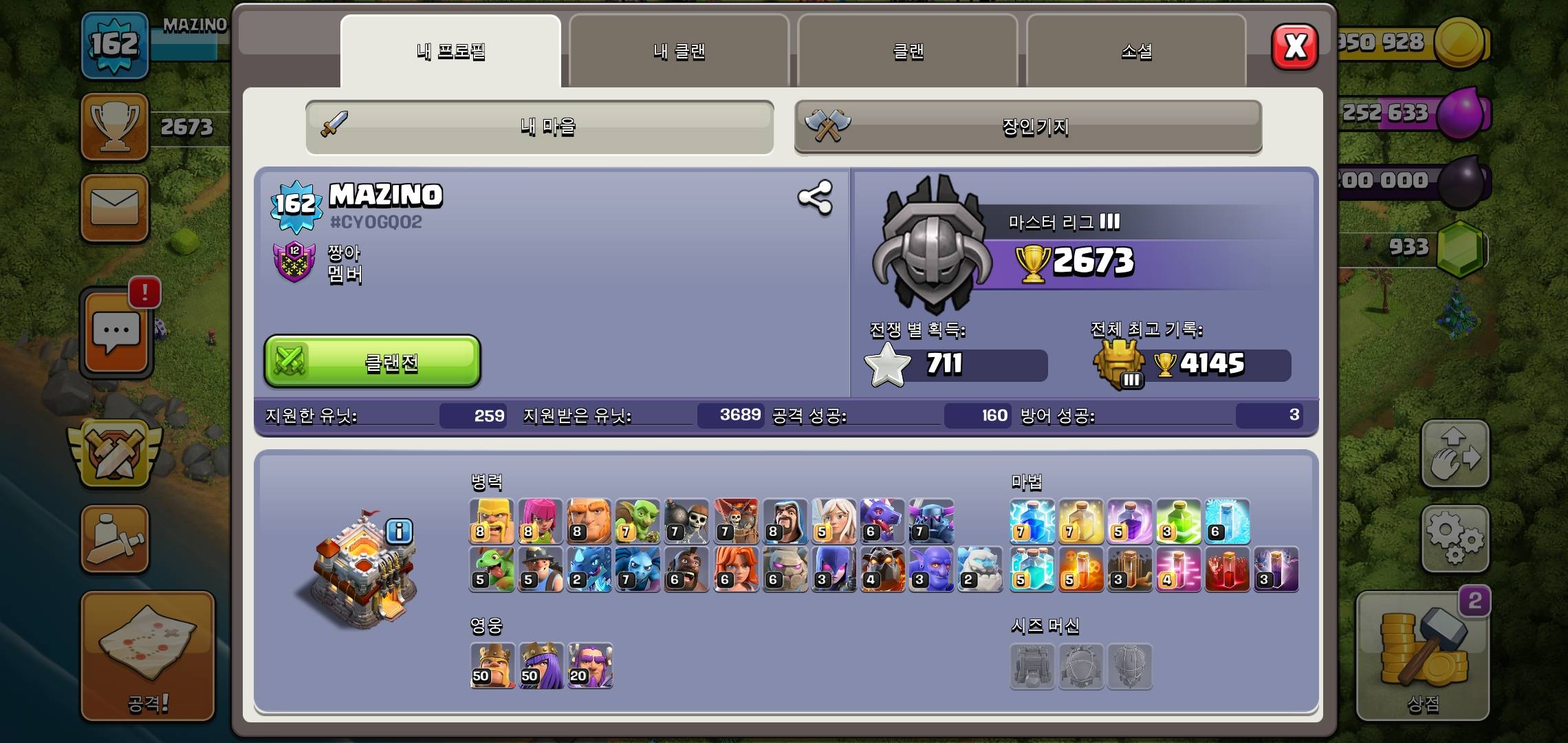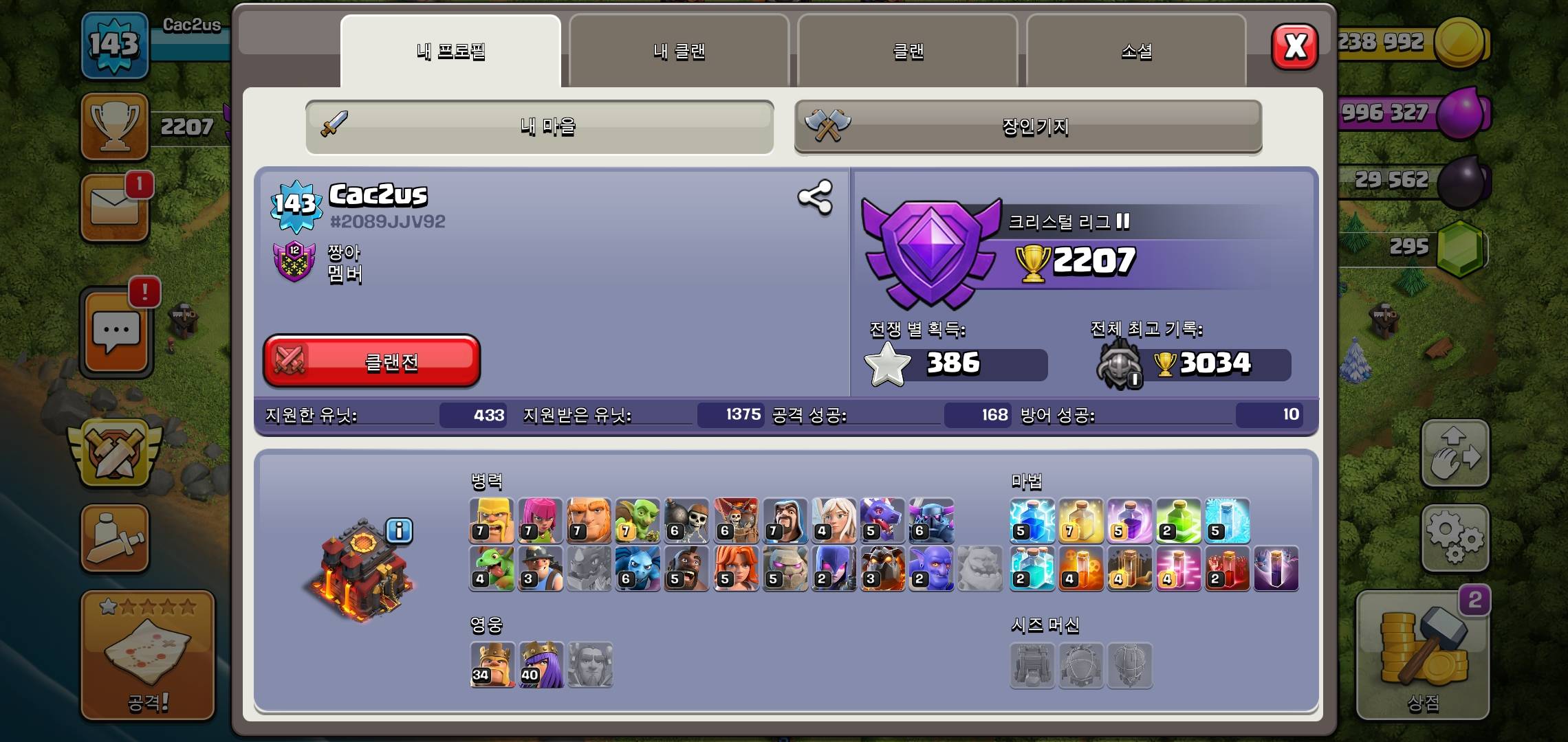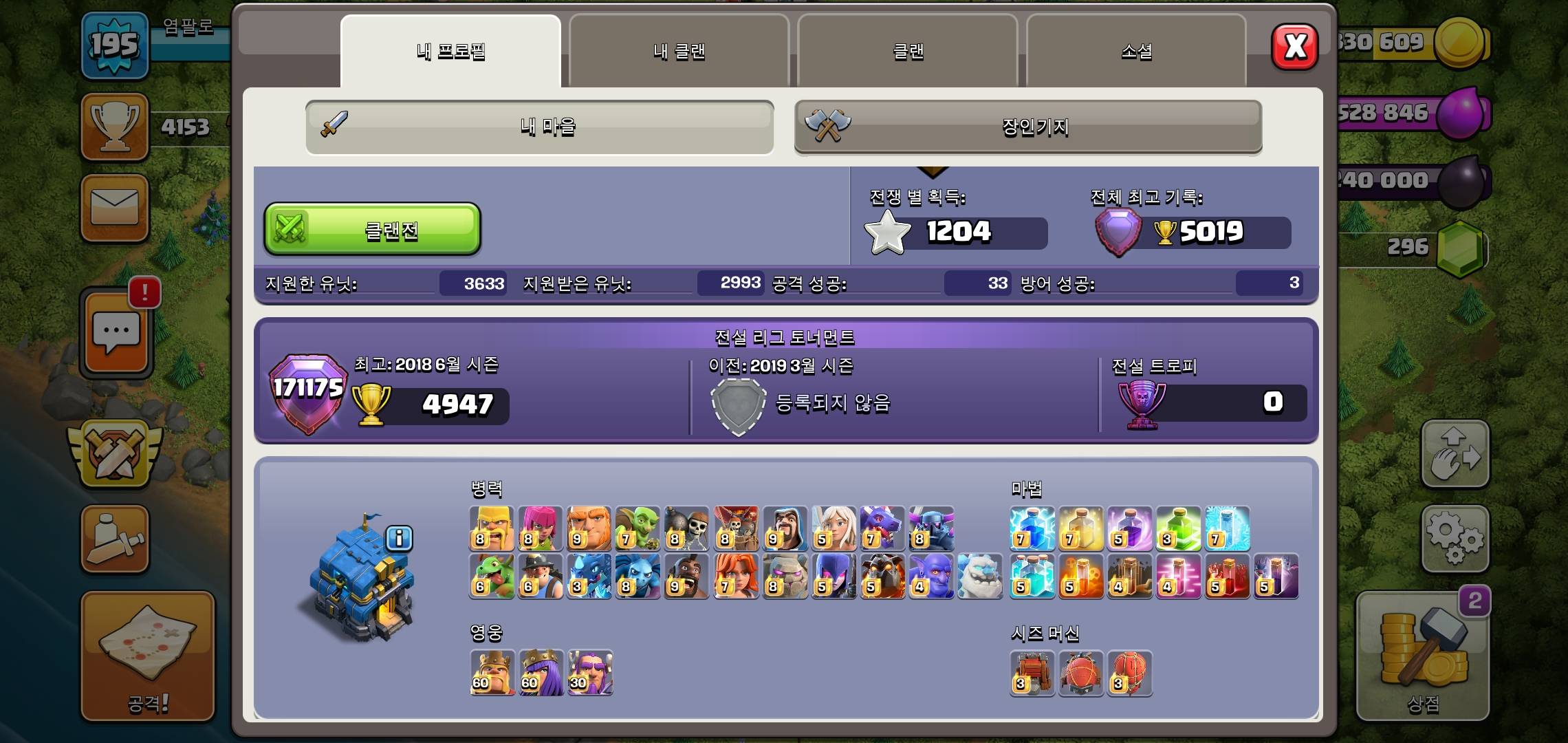 지금 복귀해도 클랜 손가락 안에 들것네 근데 영웅레벨 올라간거보소 존나 피곤하네 저거보니 또