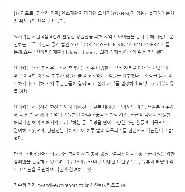 왜놈도 일억씩 기부하는데 윾갈비 모하냐이거야~