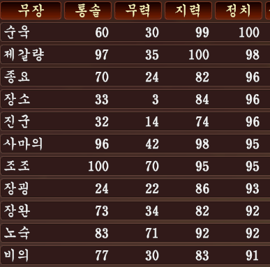 앞에서 지력을 봤으니 이번에는 정치를 보도록 하자.