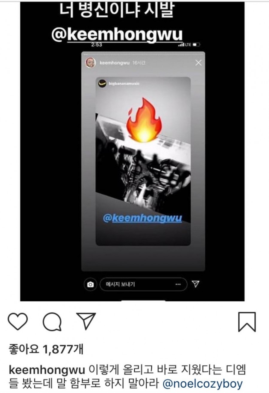 노엘이 인스타 스토리로 레디깜 그거 캡쳐해서 레디한테 누가 일름보짓함 레디가 자기 인스타에 지랄하지말라고 올림 이새끼들 이젠 랩으로 디스 안하고 인스타로 디스짓 ㅋㅋㅋㅋㅋㅋ