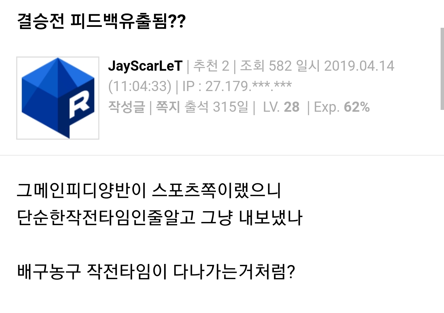 근데 피드백좀 유출되면 안됨?? 어차피 상대팀만 못보면 상관ㅇ없는거 아님?