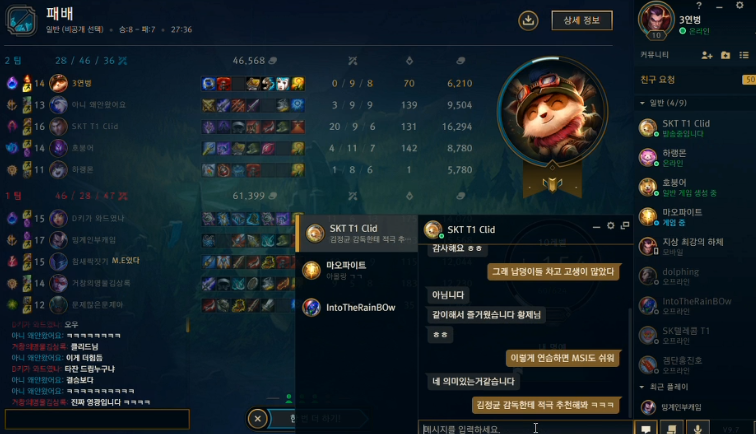 클리드가 2-3판 같이한다고 했다가 한판만 같이하고 손절
