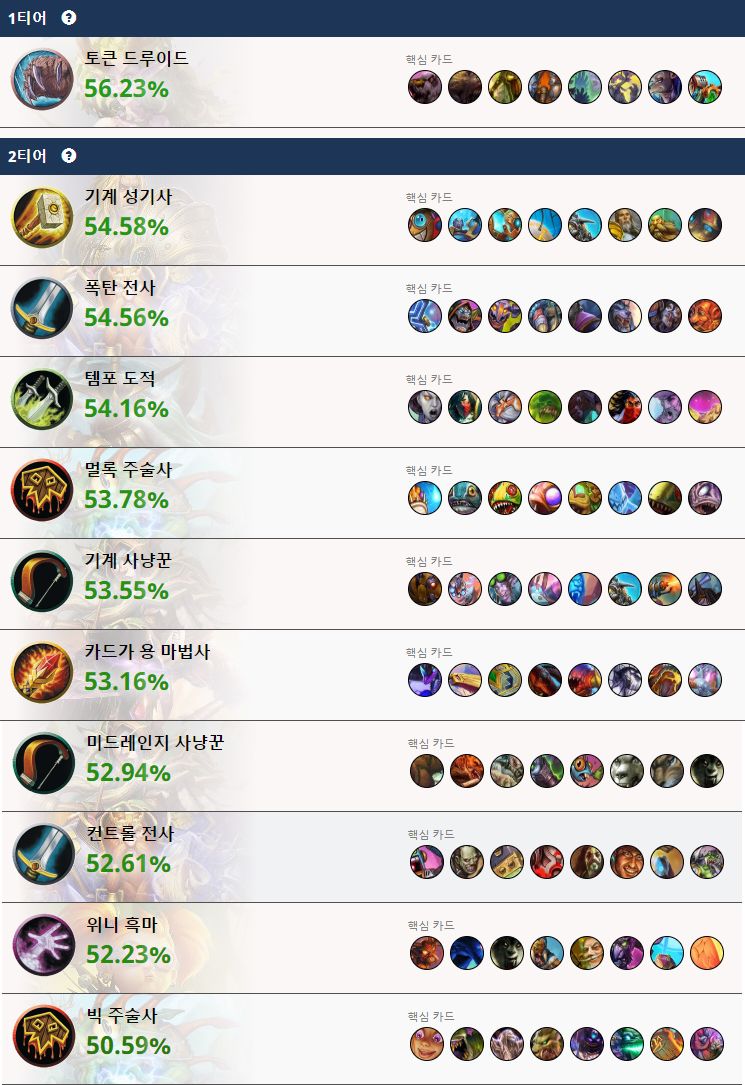 대충 이정도 5급정도에서 보이는데(아직 확팩 초기라 새로운덱 계속 나오는중)