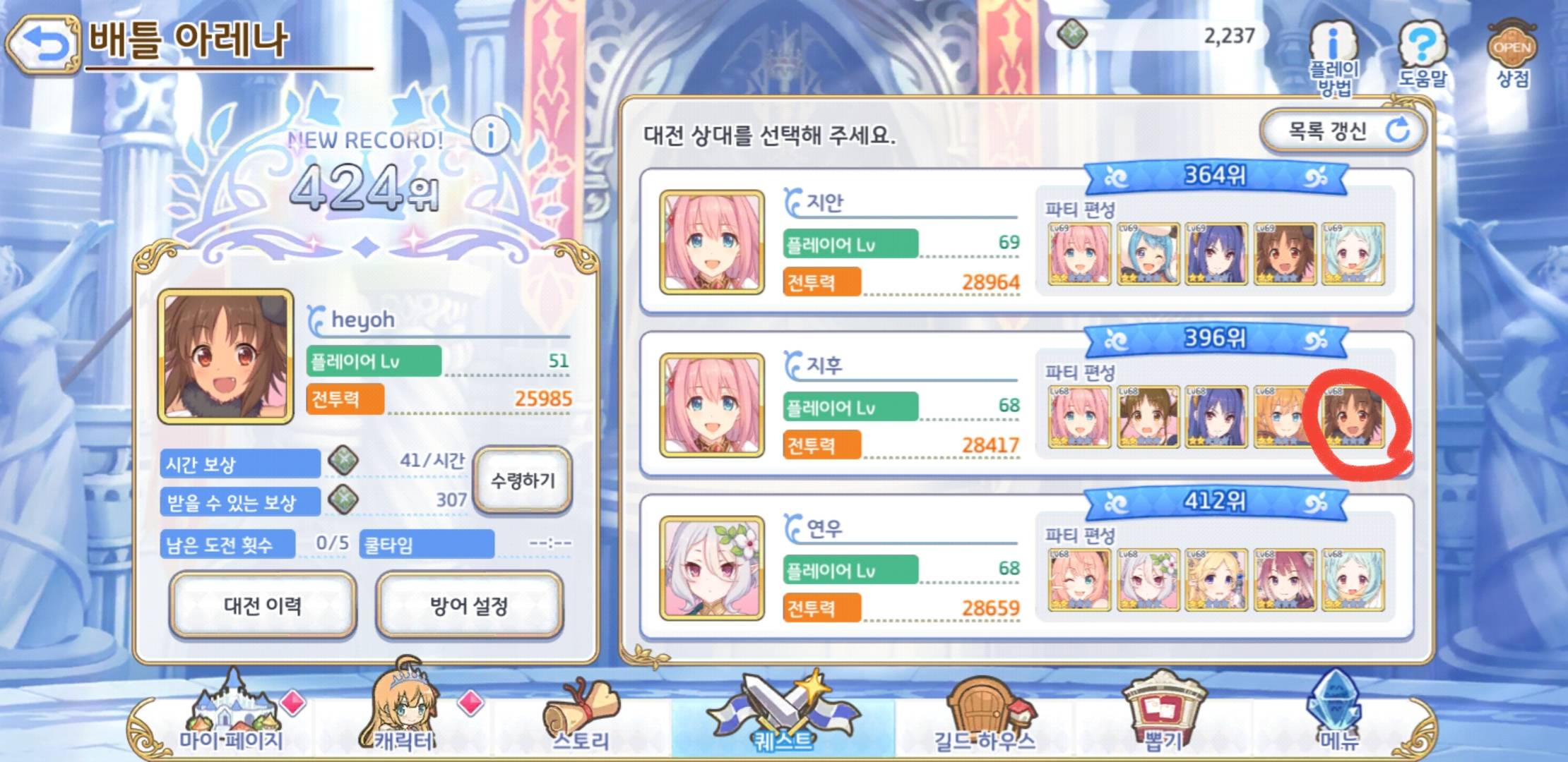 아레나 목록갱신하다보면 그림처럼 제일우측열에 탱커가아닌 근접딜러가 배치된경우가 종종있음