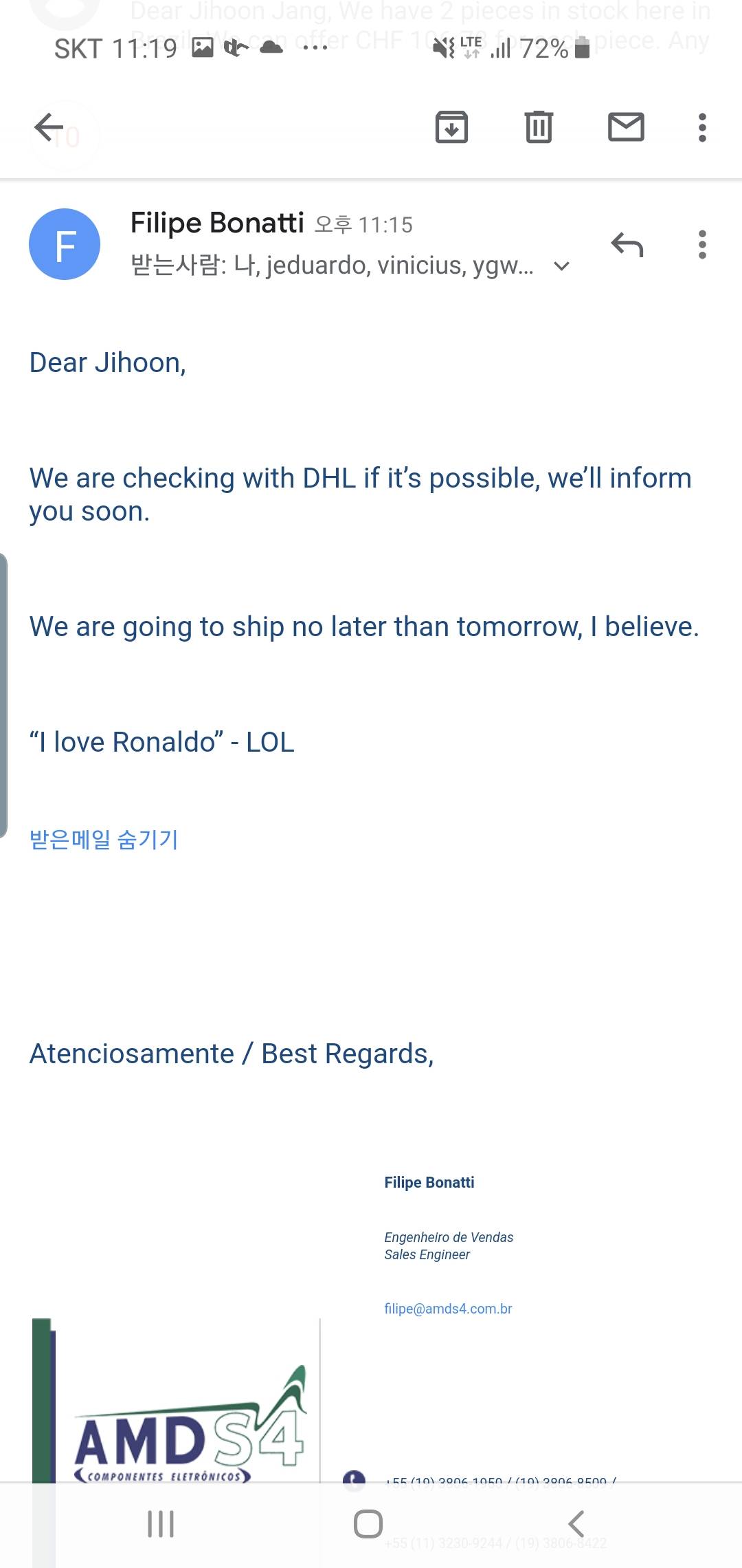 납기 좆빡상황에 지금 입금 못해서 선발주 요청하는건인데