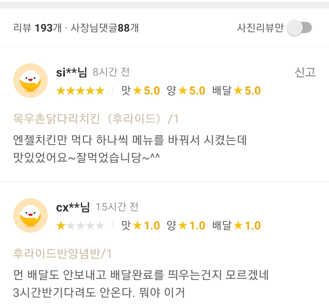 또래오래: 아~ 요기요! 오늘 배민이 주문이 많아서 요기요 안봄 ㅎㅎ;;