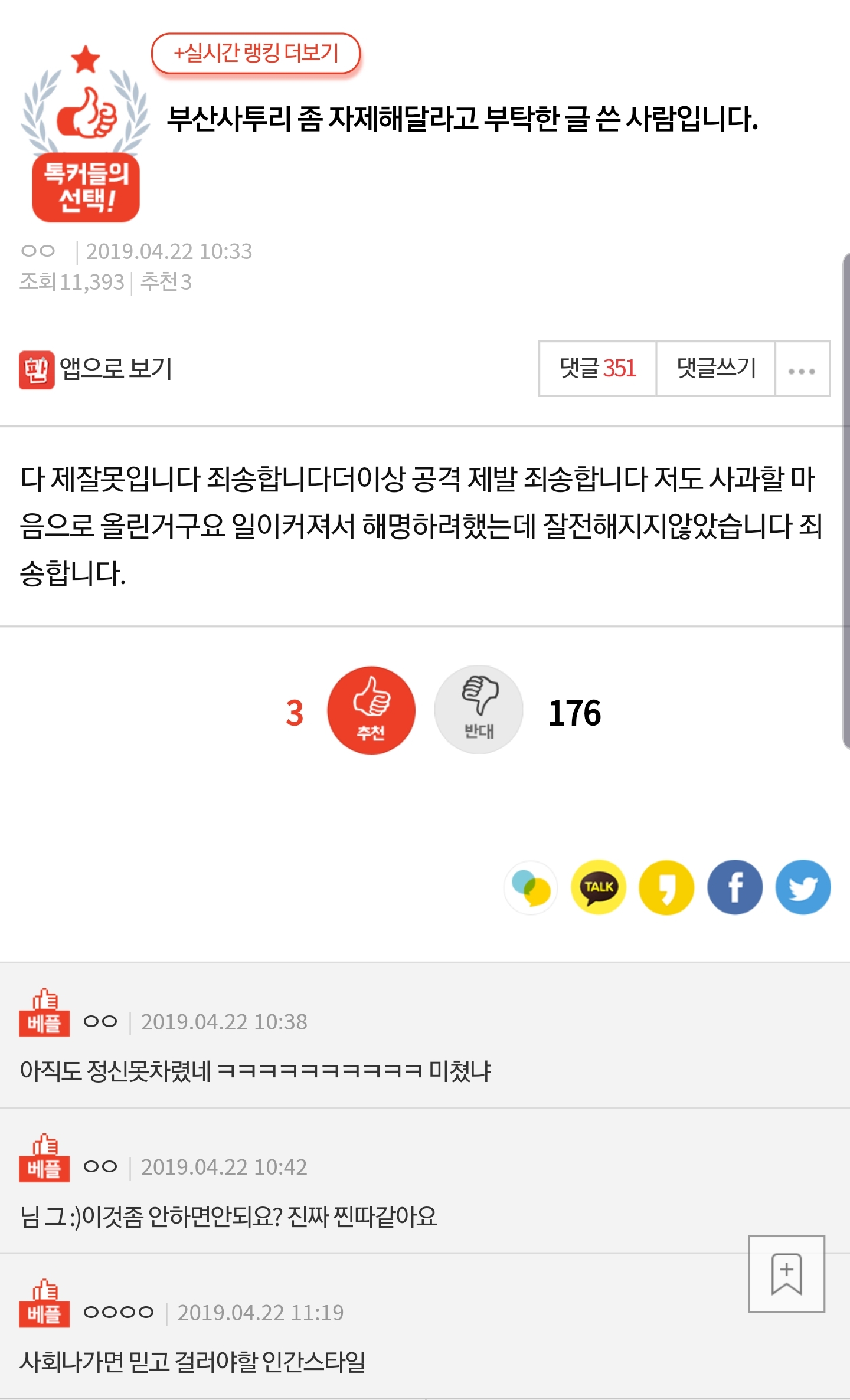 글쓴 꼬라지봐라ㅋㅋㅋ 주작이길빈다 씹쌔끼야