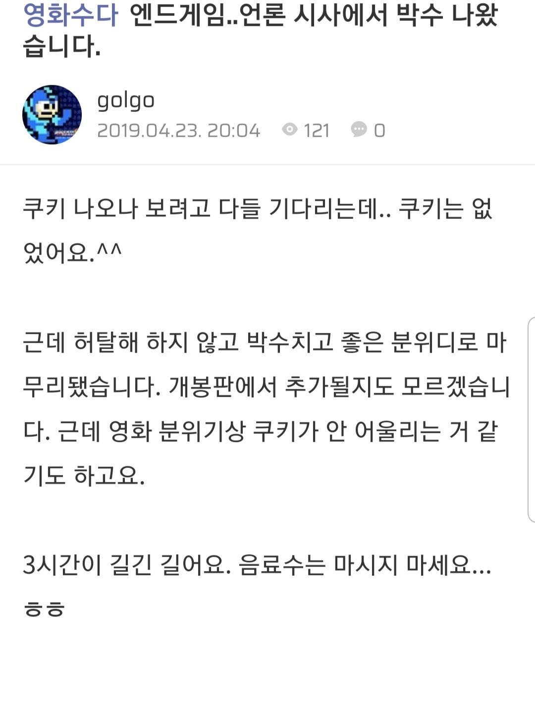 쿠키영상 없다고 하니 기다리지 말고 눈물 닦으면서 나오면 됨