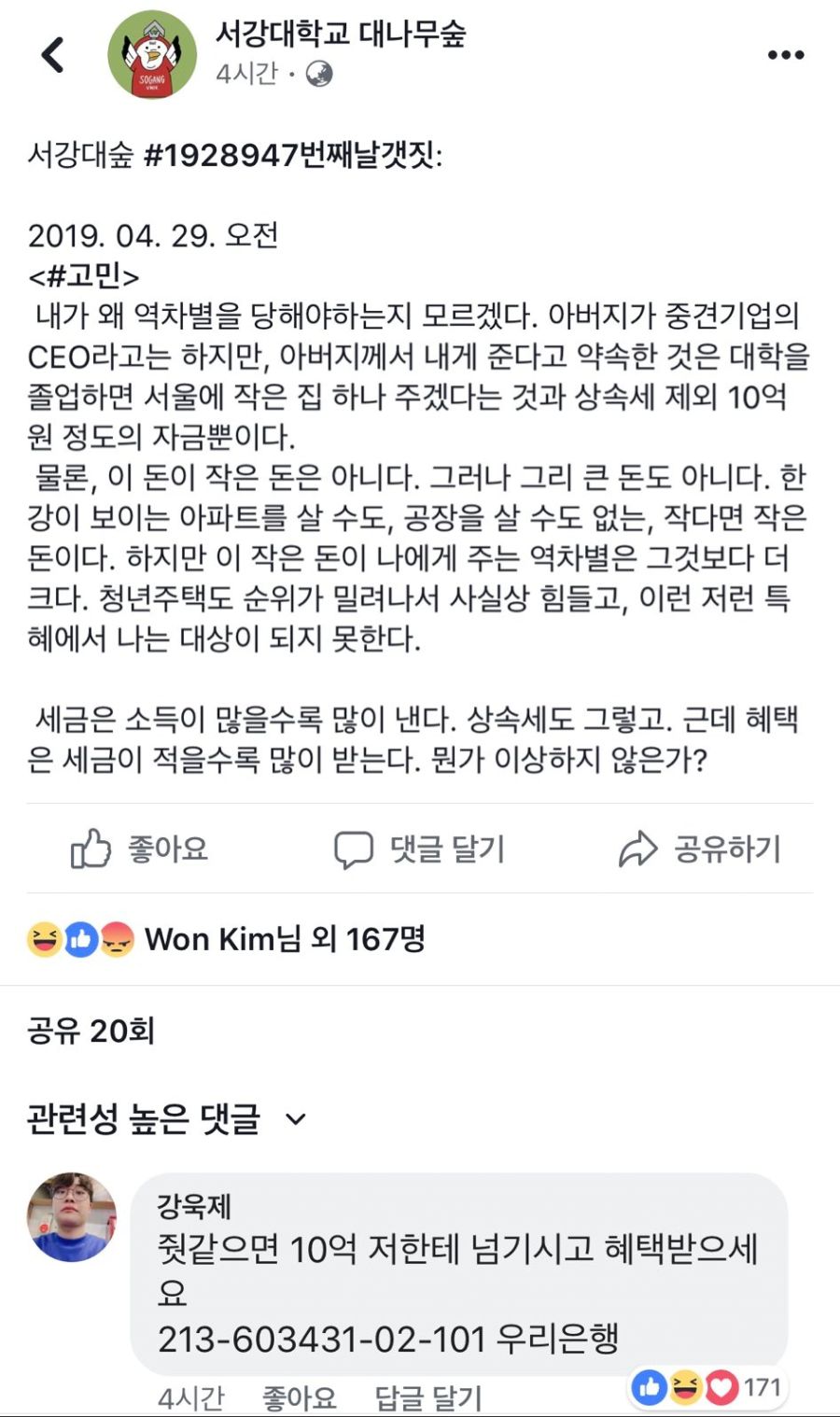 시발 배부른 소리하네 집에 10억 받는 놈이 청년주택을 논해?ㅋㅋ