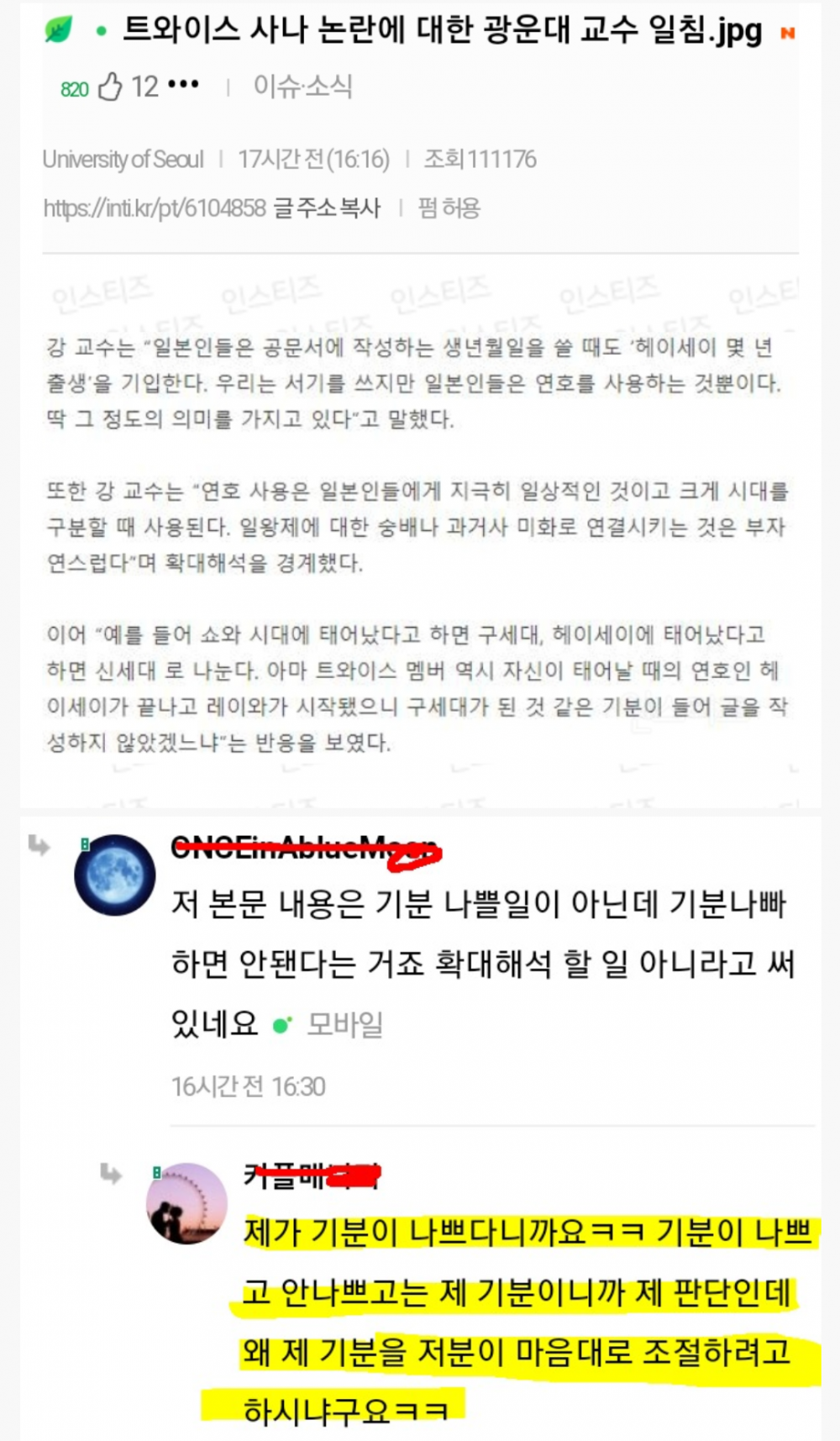 그래서 사나는 기분이 어떨꺼같냐 x년아?