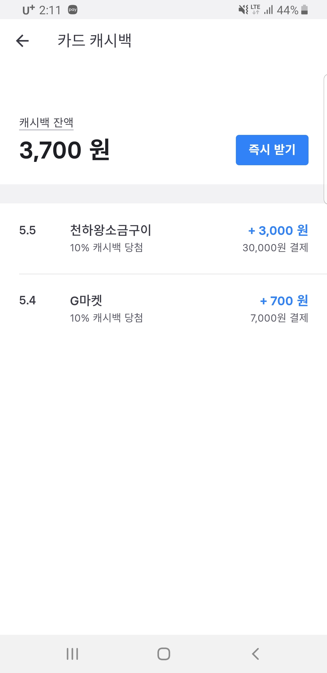 현재까지 캐시백당첨률100프로ㅋㅋ