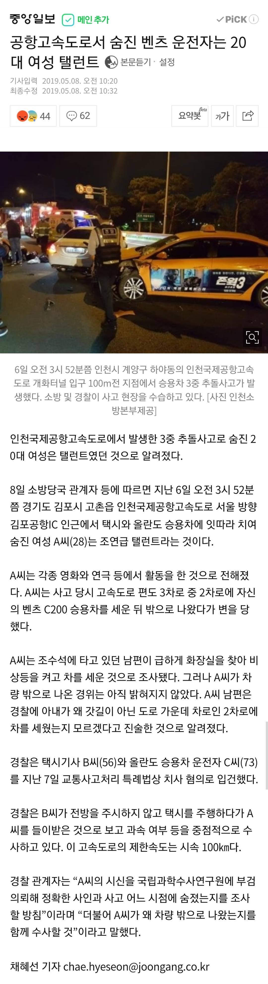 동승한 남자가 화장실 가고 싶다고 2차선에서 내려주고 남자가 3차선 -> 갓길로 뛰다가 그거 보고 3차선 뒷차가 피하면서 2차선에서 같이 내리던 여자 치고 날아가서 1차선에서 다른 뒷차에 또 치임 이라던데?